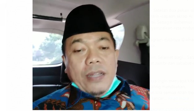 “Assalamualaikum. Selamat pagi… Salam sehat untuk kita semua. Yang saya cintai masyarakat Jambi dan sahabat-sahabat saya…” tutur Wo Haris, Kamis (21/1/2021).