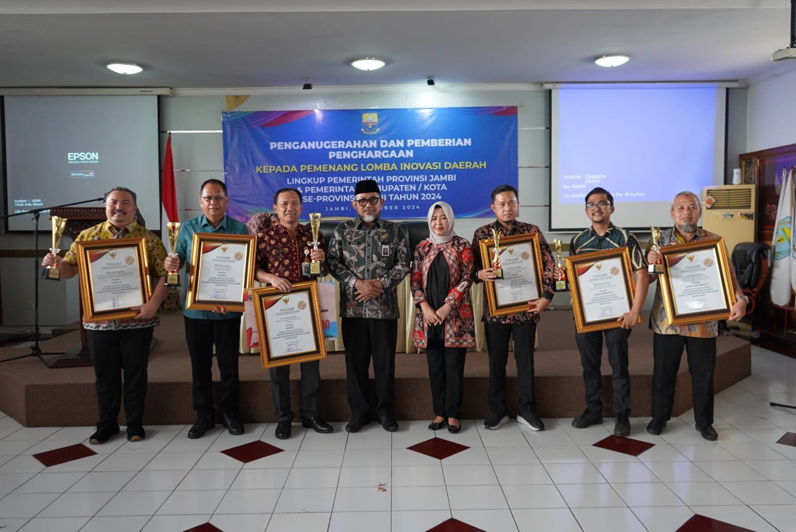 Sedangkan untuk Pemenang Lomba Pengukuran Indeks Inovasi Daerah (IID) se-Provinsi Jambi Tahun 2024 adalah sebagai berikut: Juara I Pemerintah Kota Jambi, Juara II Pemerintah Kota Sungai Penuh, dan Juara III Pemerintah Kabupaten Kerinci. Juara Harapan I diraih oleh Pemerintah Kabupaten Tanjung Jabung Timur, Harapan II oleh Pemerintah Kabupaten Tanjung Jabung Barat, dan Harapan III oleh Pemerintah Kabupaten Sarolangun. (Diskominfo Provinsi Jambi)
